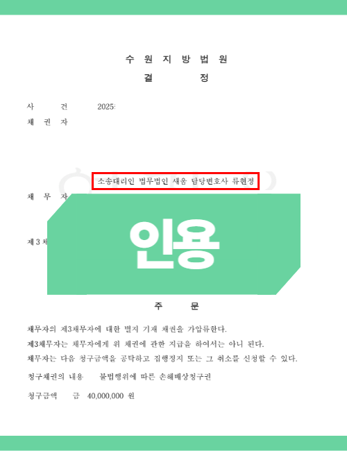 의뢰인 A씨는 배우자가 아닌 제3자가 가지고 있는 채권에 대해 가압류를 신청해야 하는 상황이었습니다.