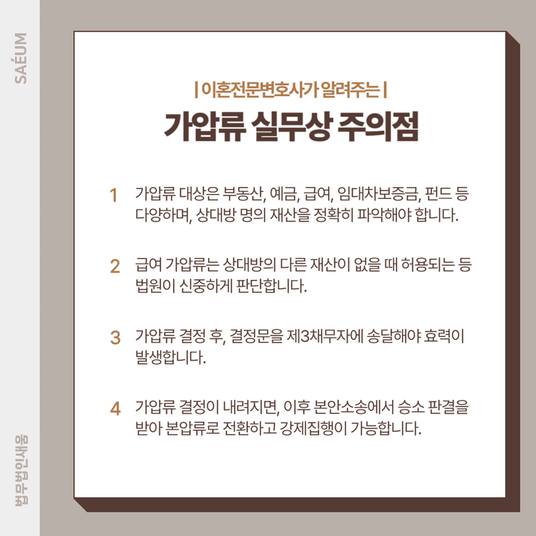 이혼 재산분할 가압류, 실무상 주의점
