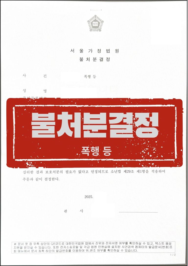 불처분결정은 형사재판으로 치면 무죄판결을 받은 것이라고 보시면 됩니다. 보호처분 자체가 열람되는 기록물이 아니지만, 그럼에도 불구하고 의미가 큰 것은, 불처분 결정을 받는다면 이후 민사소송의 위험에서도 자유로워질 수 있기 때문입니다.