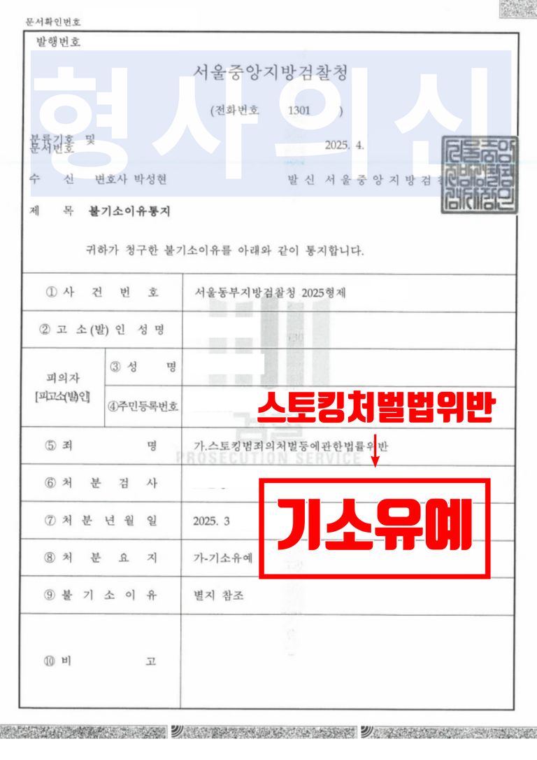 의뢰인은 내연관계로 수개월 간 만나다 헤어진 사이였던 피해자가 ‘그만 연락하라’고 했음에도 불구하고 수차례 문자, 카카오톡 메시지를 전송하여 피해자로 하여금 불안감과 공포심을 일으키는 스토킹처벌법위반 혐의로 피소되었고, 이에 법률사무소 유(唯)에 수사 변호를 의뢰하였습니다.