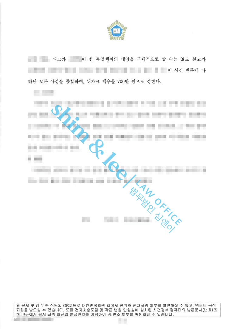 -이번 사례는 사실관계를 면밀히 파악하고, 상대방의 주장을 구조적으로 반박한 결과 원고가 청구한 3,000만 원의 위자료 중 2,300만 원을 방어한 사건입니다.