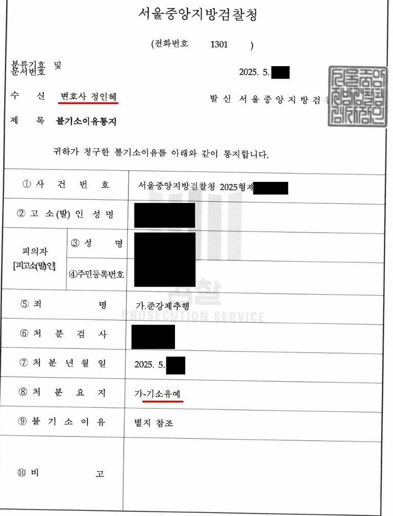 의뢰인은 검찰에서 기소유예 처분을 받았습니다.
