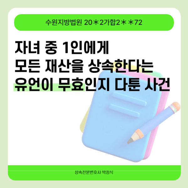 부친은 생전 자신의 예금 및 부동산 전부를 자녀들 중 1인인 피고에게 남겨준다는 유언을 남겼습니다.
