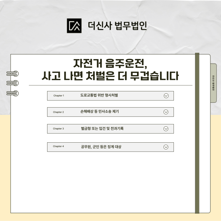 음주 상태에서 자전거를 운전하면 형사처벌, 전과기록, 민사배상, 신분상 불이익까지 모두 발생할 수 있습니다.