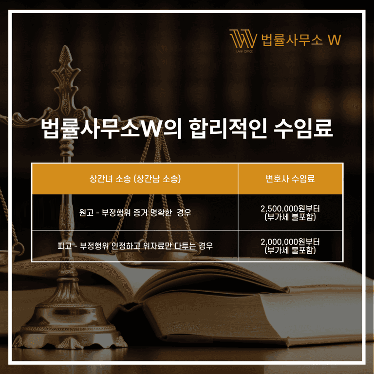 그래서 저희 법률사무소 W는 상간자 소송 수임료를