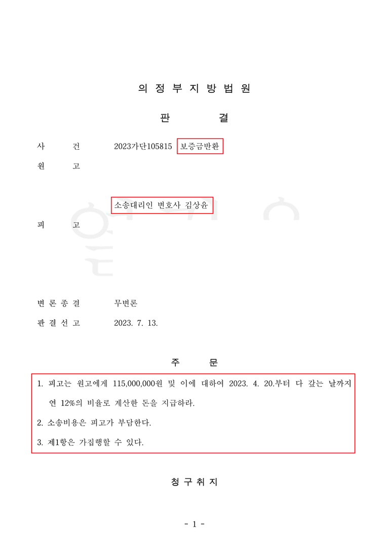 원고 전부 승소