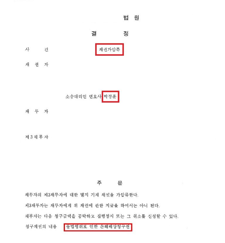 빠르게 가압류 결정을 받을 수 있었습니다.