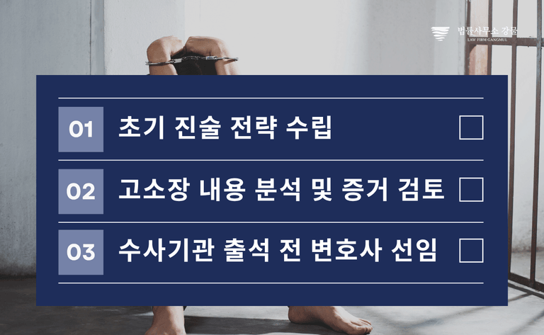 초기에 어떤 태도로, 어떤 범위까지 진술할지 전략을 세워야 합니다.고소장 및 증거 분석