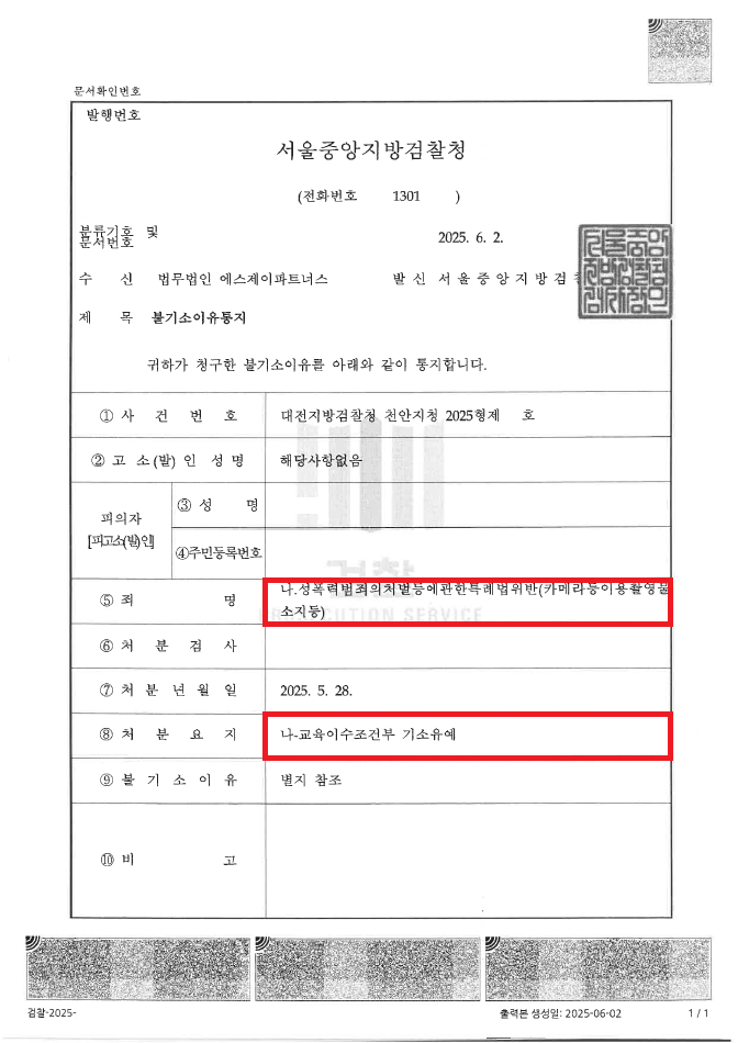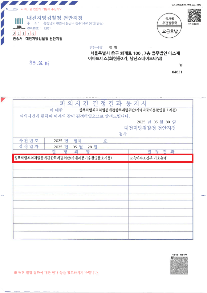 이러한 저의 조력을 바탕으로 A씨는 기소유예 처분을 받음으로써 아무도 모르게 어떠한 전과기록도 남기지 않고 사건을 마무리할 수 있었습니다.