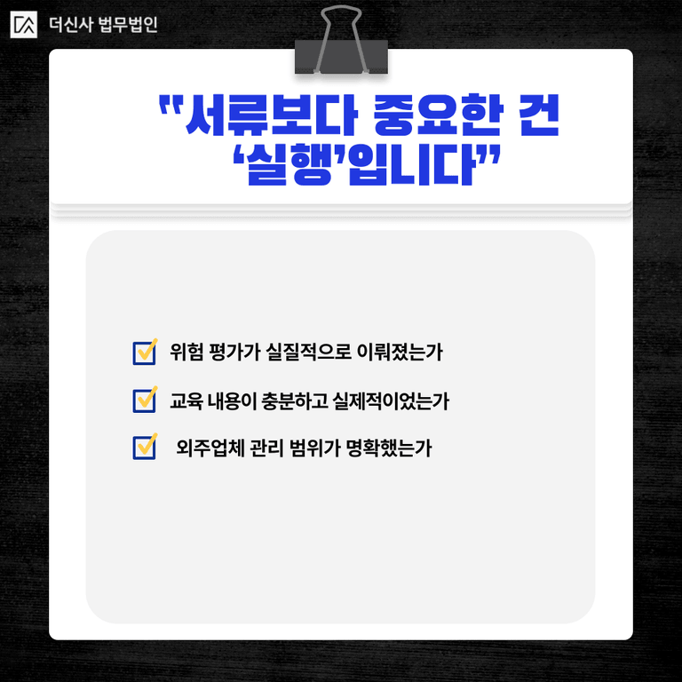 산업재해가 발생한 경우, 형식적으로만 기준을 맞췄다고 안심해선 안 됩니다.