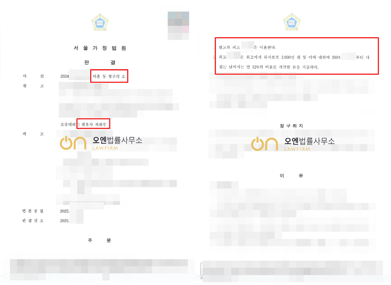 재판부는 담당변호사의 주장을 받아들여, 의뢰인과 상대방의 이혼과 동시에 의뢰인의 상대방에 대한 위자료 청구 전액을 인정하였습니다.