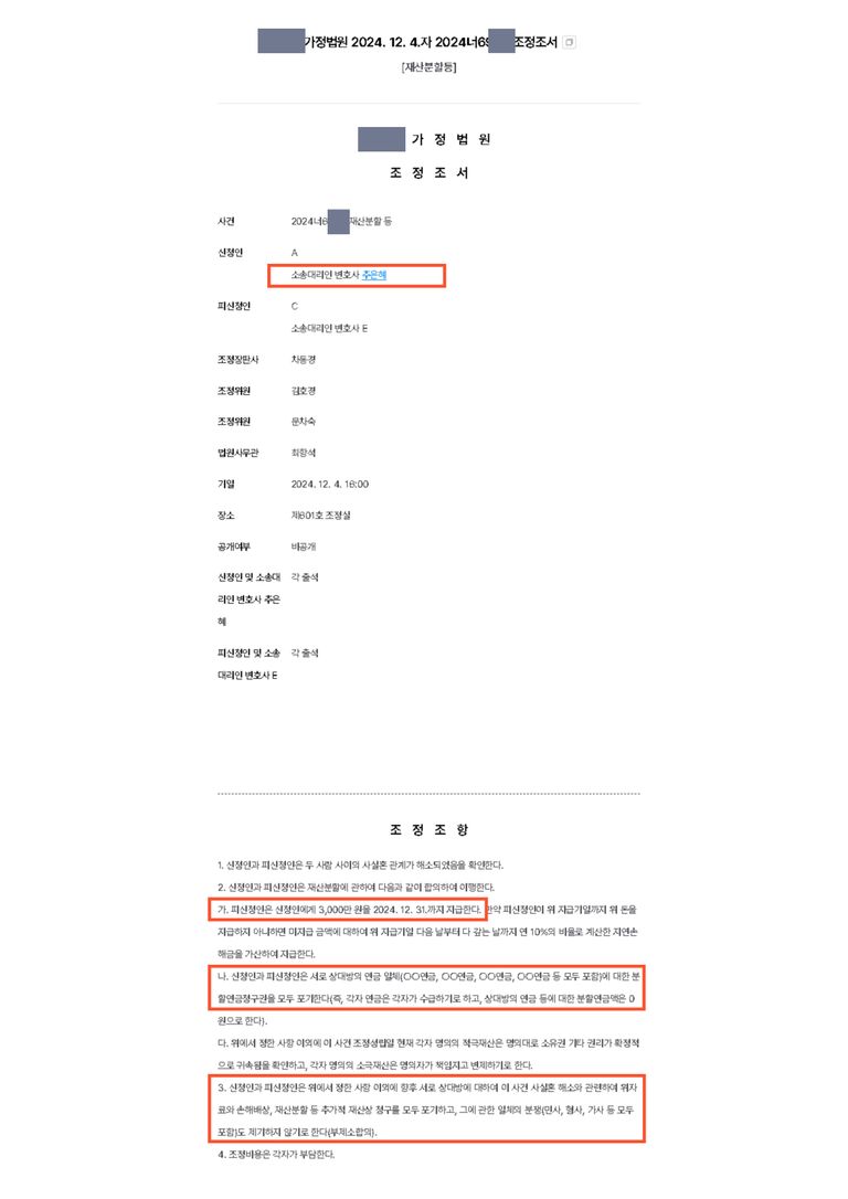 대구가정법원의 조정 과정을 통해 다음과 같은 극적인 합의를 이끌어냈습니다.