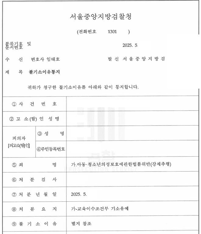 5. A씨는 미성년자 강제추행죄 사건에서 저희의 조력을 받음으로써 검찰단계에서 기소유예 처분을 받으셨습니다.