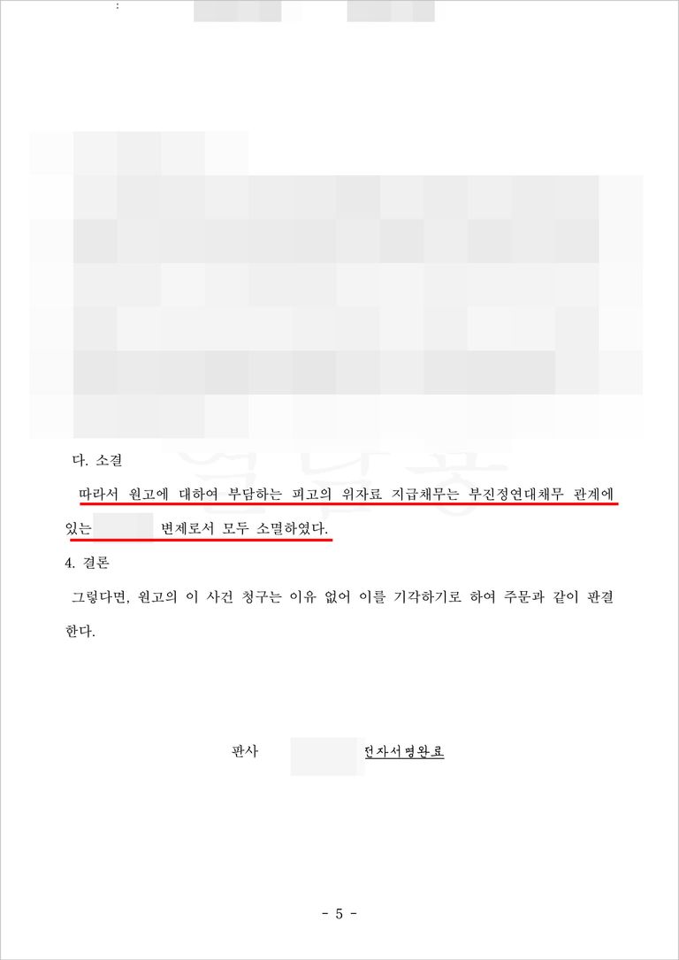 구체적인 증거를 통해 앞서 말씀드린 논리를 적극 주장한 결과, 재판부에서는 이를 받아들여 원고의 상간녀 위자료 청구에 대해 기각 판결을 내렸습니다.