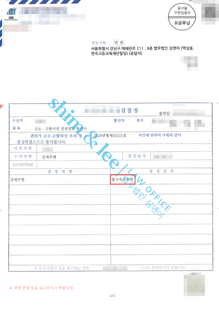 - 심앤이는 곧바로 검사실에 피해자의 엄벌탄원서와 변호사 의견서를 제출하여 가해자의 죄질이 매우 불량한 점, 지금까지 전혀 반성하고 있지 않은 점, 피해자는 사건 이후 극심한 육체적, 정신적 고통을 겪고 있는 점을 피력하고 법이 허용하는 최대한의 처벌이 내려질 수 있도록 빠른 기소 처분을 간곡히 요청 드렸습니다.