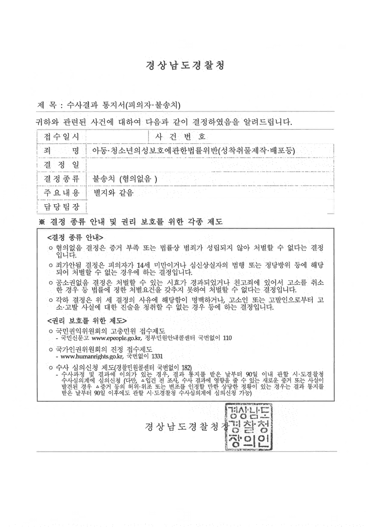 - 의뢰인이 기억하고 있는 당시 기억 및 추가적인 사실관계를 검토하여, 수사기관에서 조사를 진행하였고, 여러 차례에 걸친 수사관에 질문에도 의뢰인은 자신이 미성년자에게 성착취물을 요구한 사실이 없다는 점을 일관되게 진술하였고, 경찰 조사 이후, 피해자의 주장을 반박하고 의뢰인에게 성착취물제작 혐의가 인정될 수 없다는 의견서를 정리하여 제출한 결과 경찰 단계에서 빠르게 불송치 처분을 받아 사건을 마무리 할 수 있었습니다.