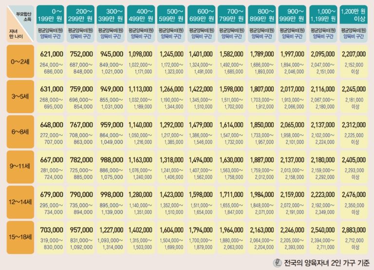 2025년 대법원 양육비 산정기준표