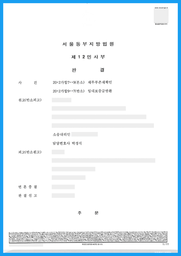 이에 원고는 피고가 이 사건 부동산에 관하여 임차권이 존재하지 않는다는 점을 주장하며 이 사건 채무부존재확인청구를 제기하기에 이르렀습니다.