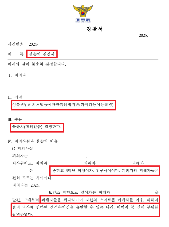 ○ ‘불송치’ 결정 : 카찰죄는 경찰단계에서 해결되는 것이 가장 중요합니다.