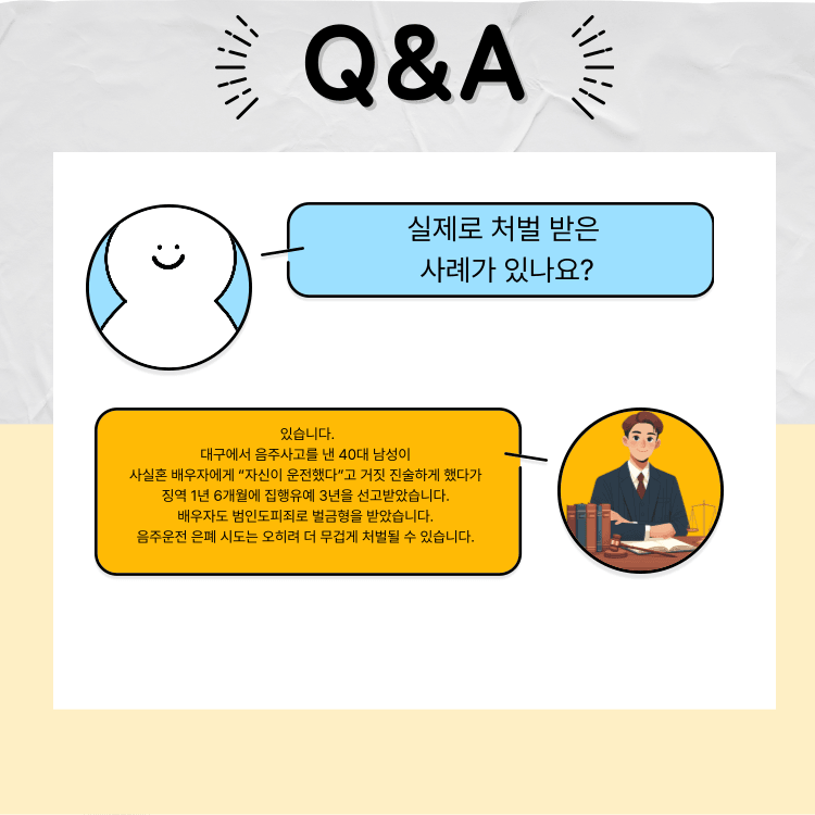 음주 단속에 걸렸을 때, “내가 아니라 친구가 운전했다”는 식으로 상황을 넘기려는 분들이 적지 않습니다.