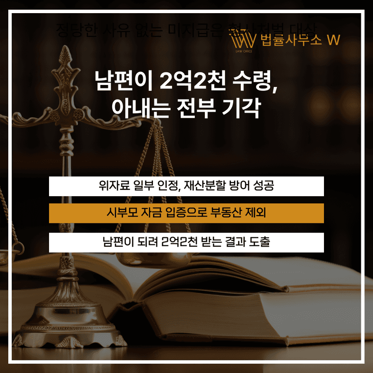 결국, 아내는 위자료와 재산분할 모두 기각되었고, 남편은 오히려 큰 금액을 받게 되었습니다.