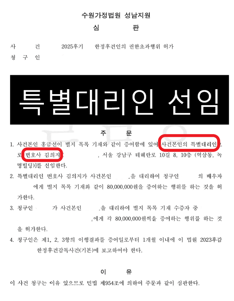 가정법원은 이러한 특별대리인 역할을 수행할 때 법률적 전문성과 공정성을 갖춘 사람을 선임하는 경향이 있으며, 특히 성년후견 및 가사 사건 경험이 풍부한 변호사가 이러한 역할을 수행하기에 적합하다고 판단되는 경우가 많습니다.