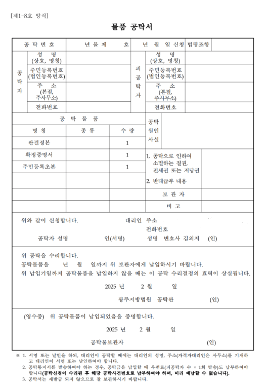 물품공탁서 양식