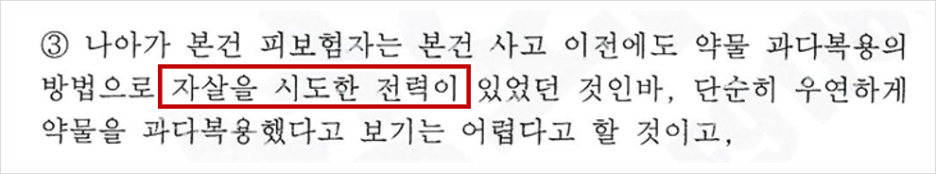 "망인이 6개월 전에도 자살 시도를 한 적이 있으며,