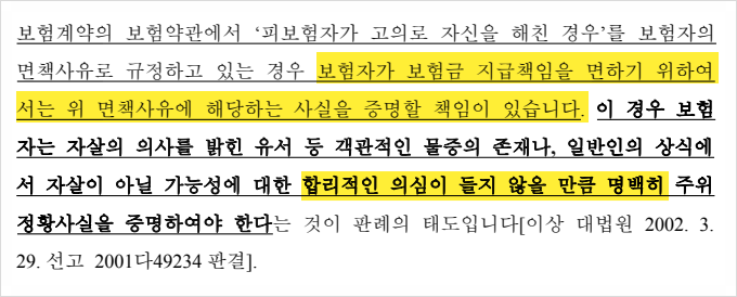 그러나 법적으로 자살을 입증해야 하는 책임은