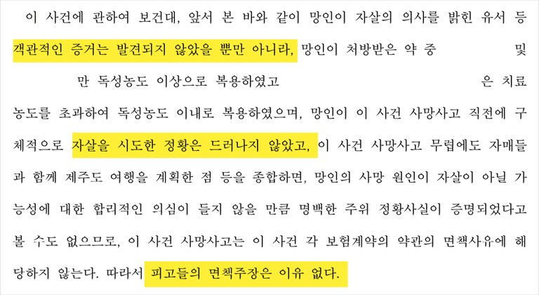 부검 결과 망인의 혈중 약물 농도가 높긴 했지만,