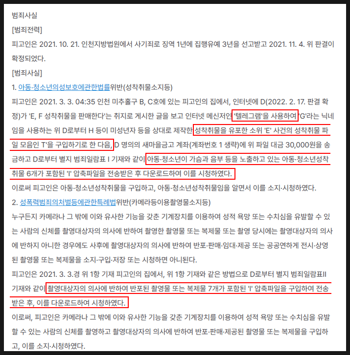 피고인은 텔레그램을 통해