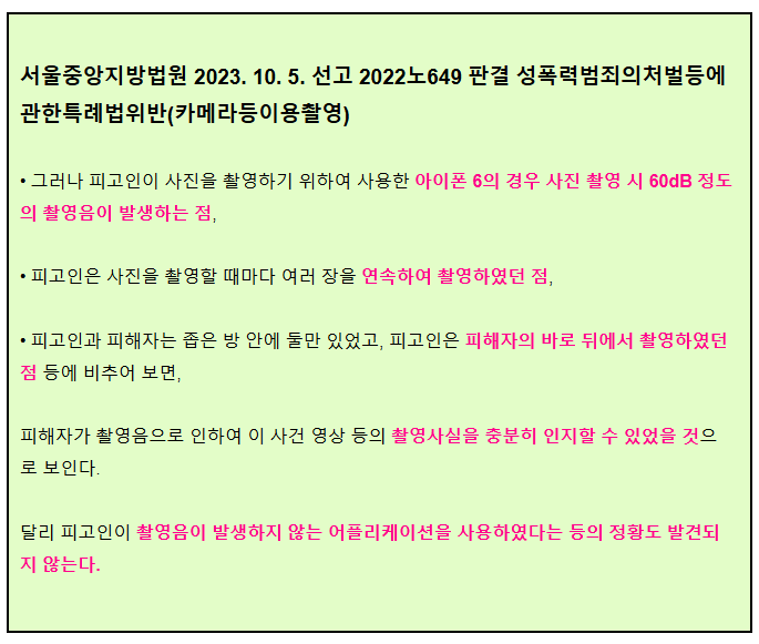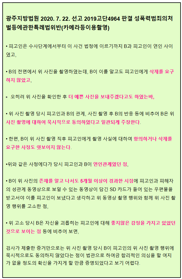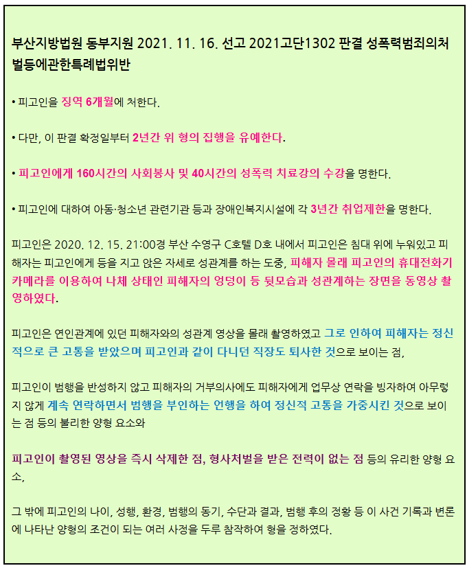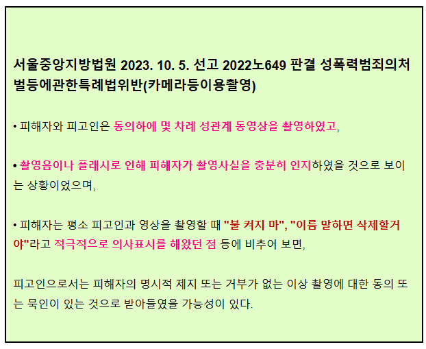 ✔ 2. 연인간 성관계 몰래 촬영시 형량