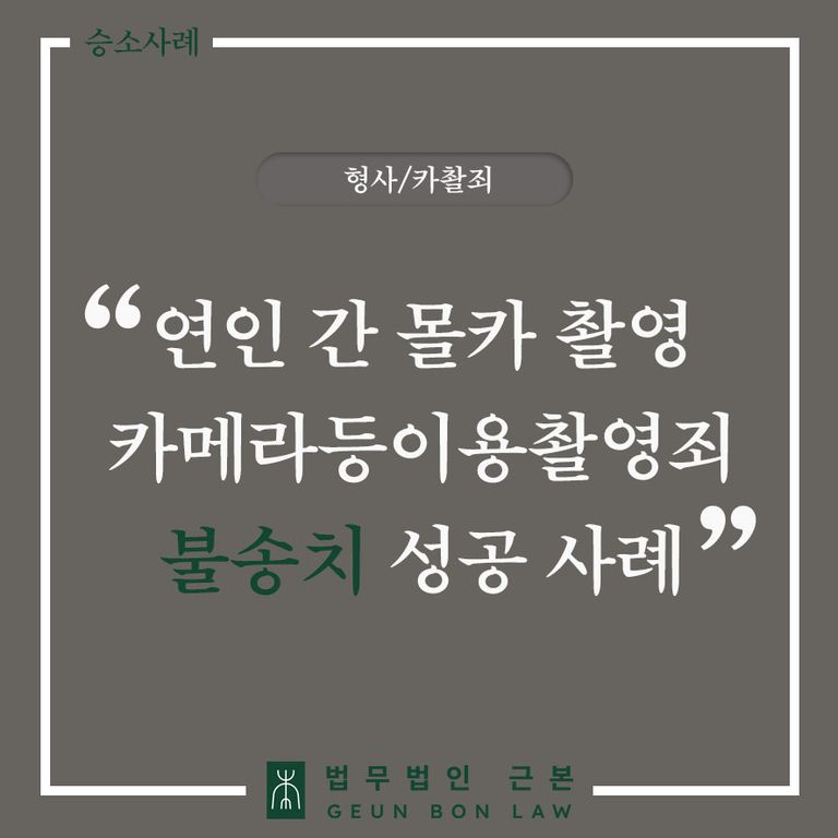 - 전연인 여친 남친 간 성관계 신체 촬영 카메라이용촬영죄 성폭법 몰카범 처벌 불송치 혐의없음 성공 사례