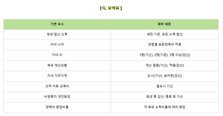 부모의 소득, 자녀의 나이와 수, 지역별 생활비, 특별한 치료비나 교육비 등 다양한 요소가 복합적으로 고려되기 때문에, 정확한 자료 준비와 전문적인 법률 해석이 필수적입니다.