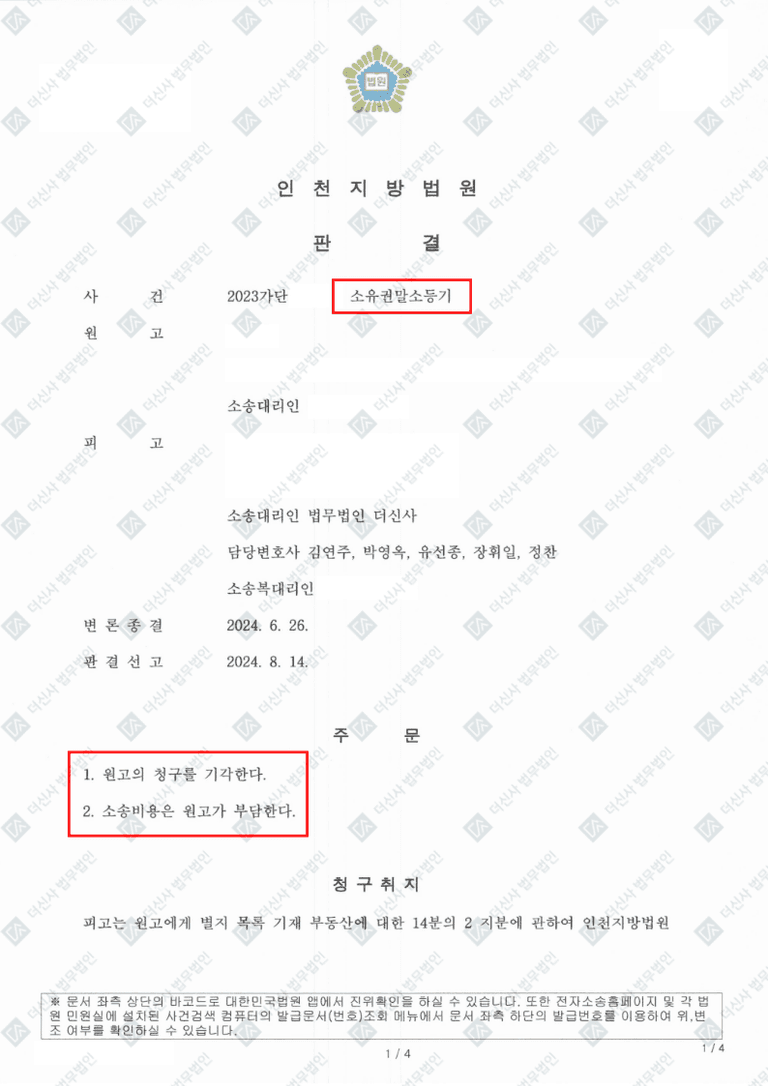 피고의 소유권을 명확히 인정받은 성공적 방어사례입니다.