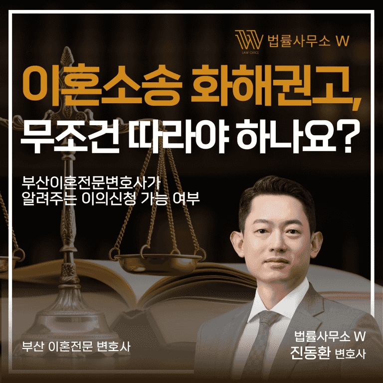 부산에서 수천 건의 가사소송을 해결해온 법률사무소 W 진동환 변호사입니다.