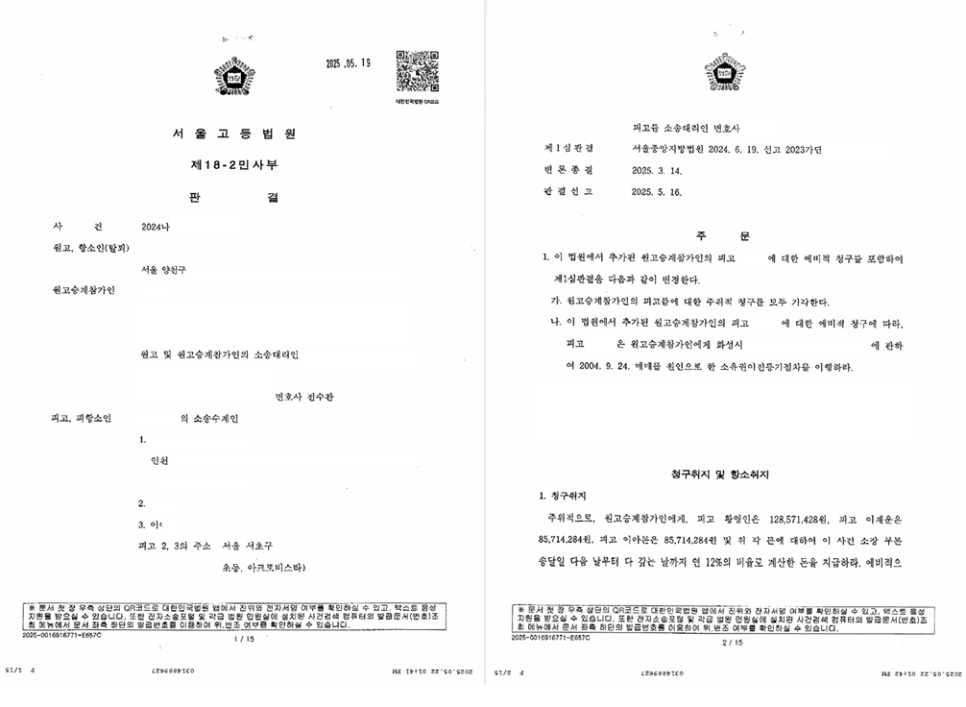 이번에 소개해드릴 민사 승소사례는 서울고등법원에서 2025년 5월 16일 선고된 약정금 청구사건입니다. 2004년에 체결된 매매계약과 2014년에 작성된 각서가 얽혀 20년 넘게 이어진 법적 다툼의 전말과 법원의 판단을 자세히 살펴보겠습니다.