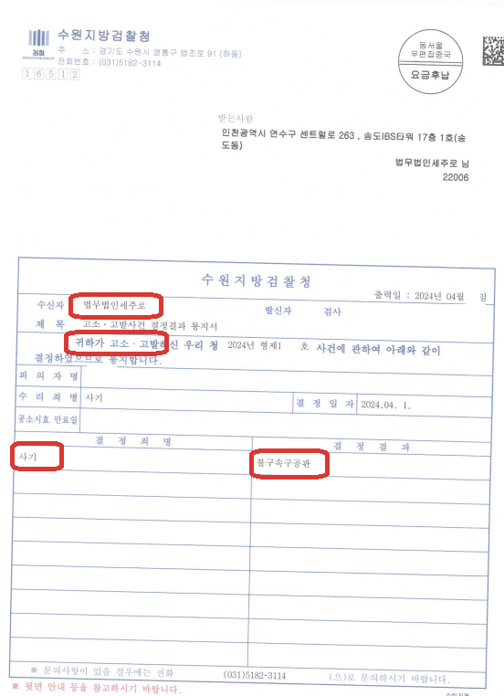 위와 같은 대응 끝에 마침내 사건 수사를 맡은 경찰 및 검찰에서는 사기피의자의 사기 혐의에 대해 인정하고, '기소(불구속구공판)' 결정을 내려 주었고, 의뢰인께서는 마침내 사기피의자에 대한 강력한 형사처벌의 기회를 가질 수 있었습니다.