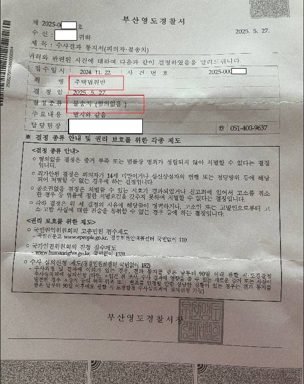 아래와 같이 이 사건은 불송치로 종결되었습니다.