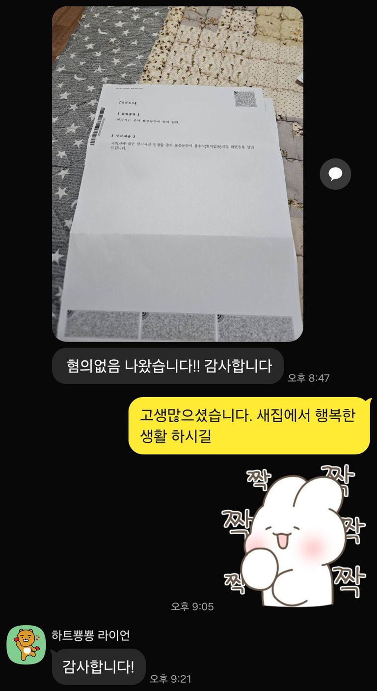피의자 신문 당일까지도 변호사가 사전에 의뢰인을 만나 소통하면서 경찰 조사를 준비하였습니다.