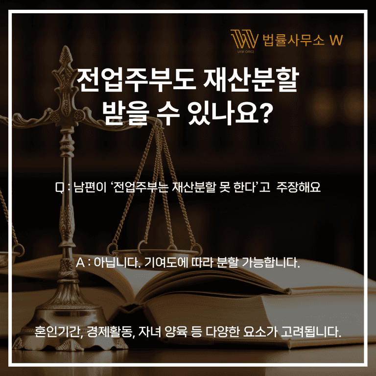 전업주부라고 재산분할에서 밀려야 할 이유는 없습니다.