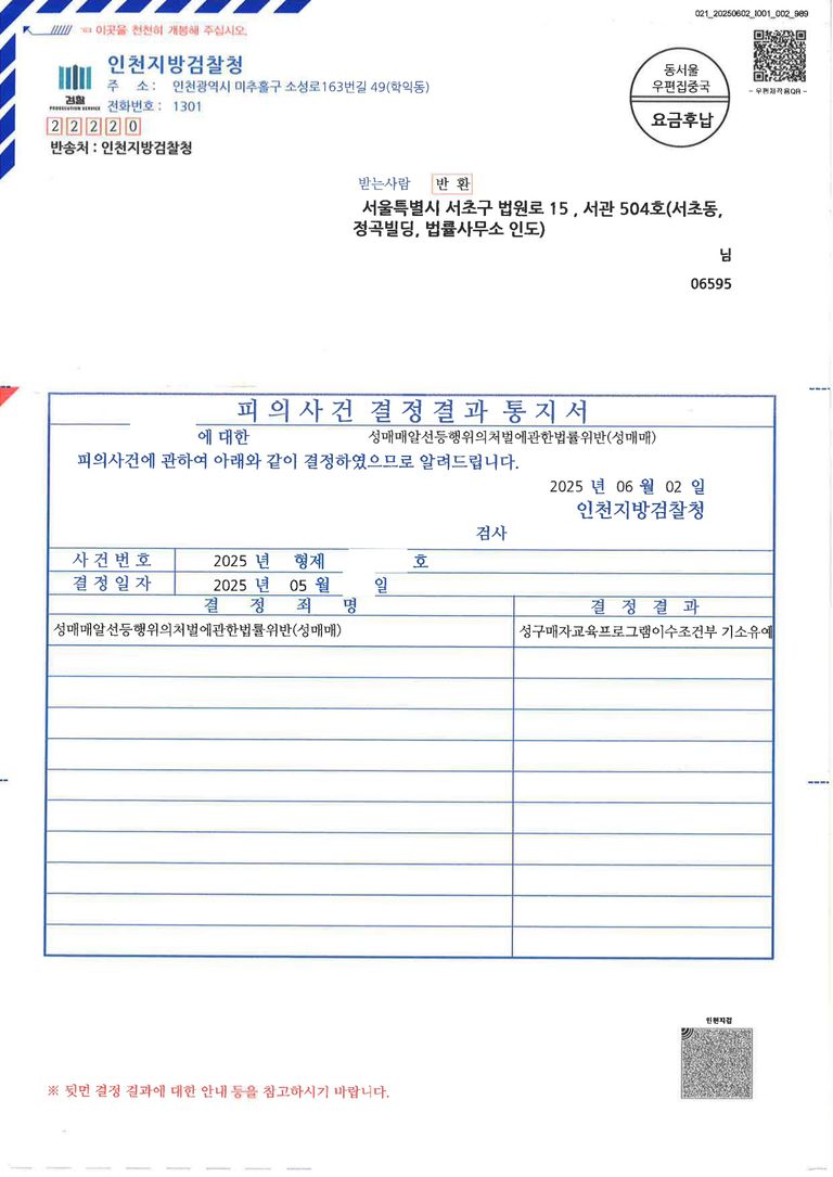 사건내용: 의뢰인은 성매매 관련된 상황으로 저희 사무실을 찾아주셨습니다.