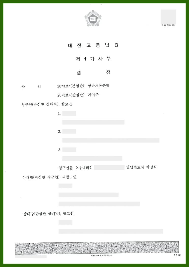 안녕하세요, 상속전문변호사 박정식입니다.
