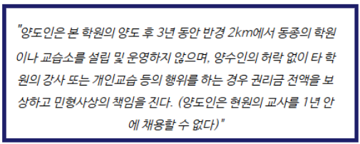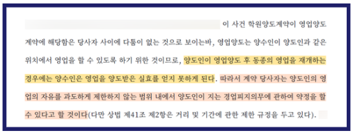 학원 양도계약 이후 경업행위로 인한 권리금 반환 청구, 양수인 승소 사례