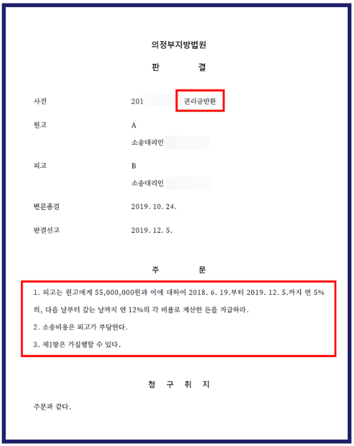 결국 의정부지방법원은 피고가 계약상 경업을 하지 않겠다는 약속을 어긴 것으로 판단하고, 원고에게 권리금 5,500만 원을 반환하라는 판결을 내렸습니다.
