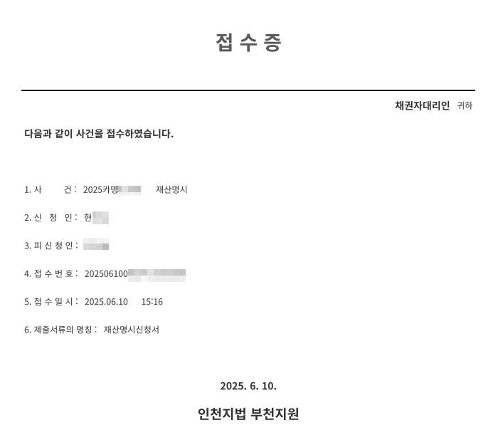 [의뢰현황] 2025년 6월 10일 현**님 재산명시 사건 위임