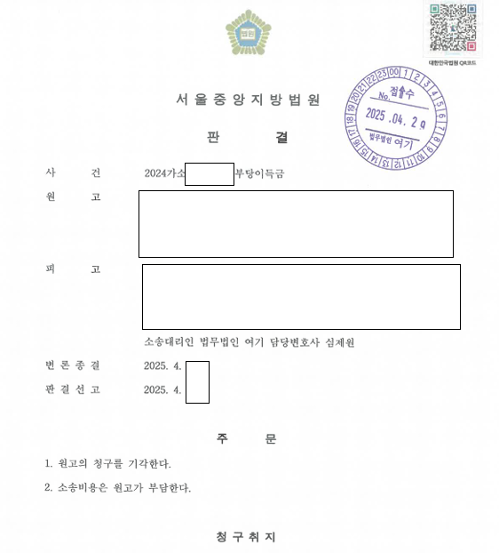 안녕하세요. 오늘은 민사사건 중 부당이득반환청구 사건의 승소사례를 포스팅합니다.