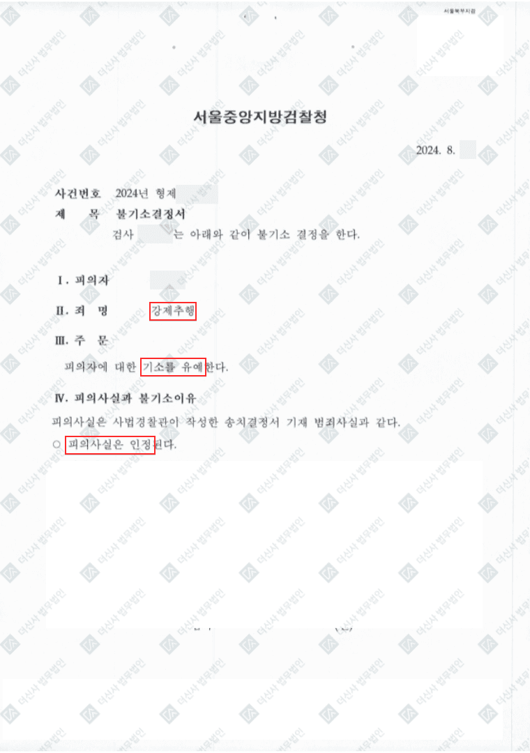다음은 실제로 저희가 기소유예 처분을 이끌어낸 사례입니다.