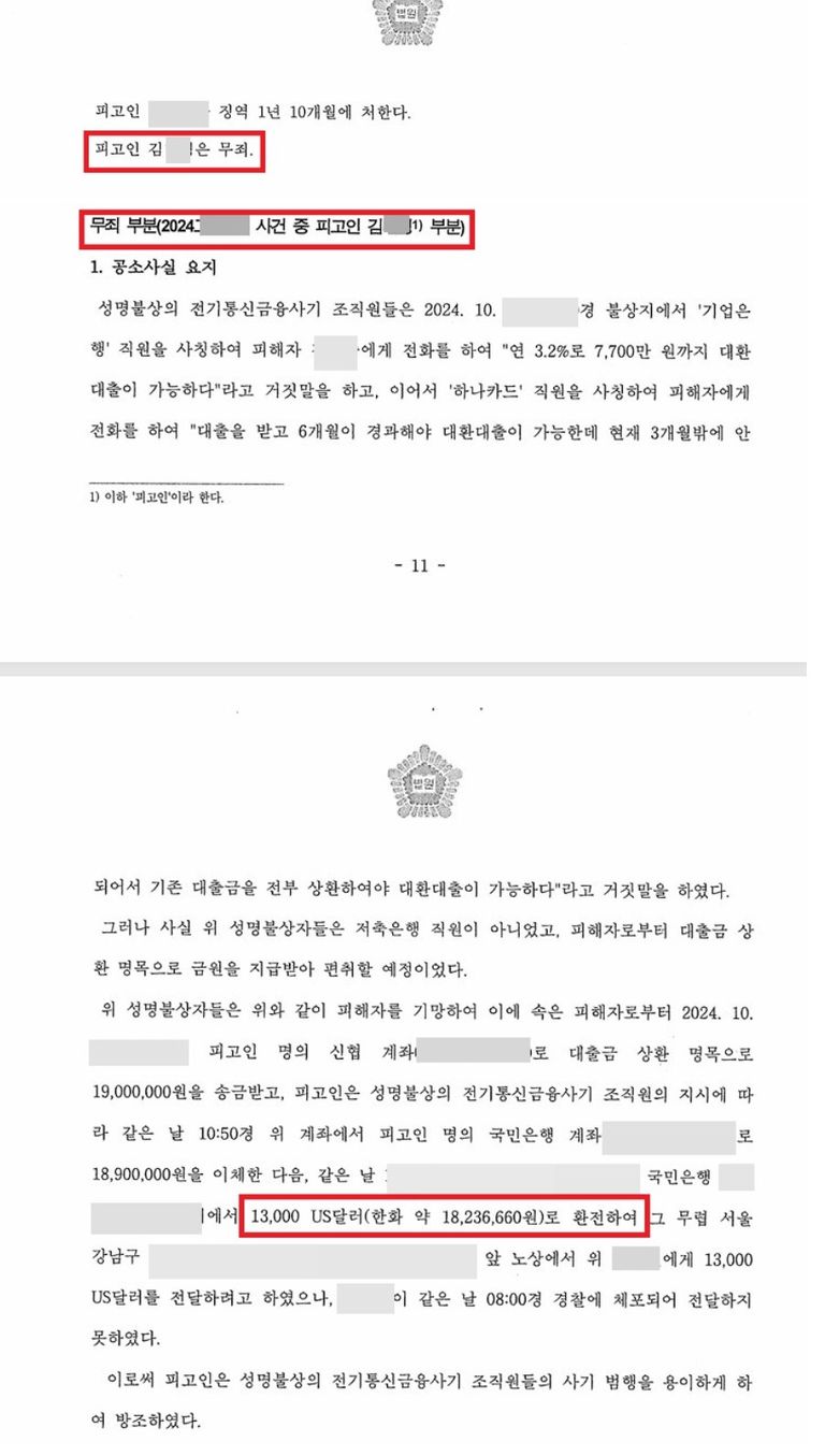 이번 포스팅은 제가 담당했던 사건 중 보이스피싱 달러 인출책 무죄가 나온 사건입니다.
