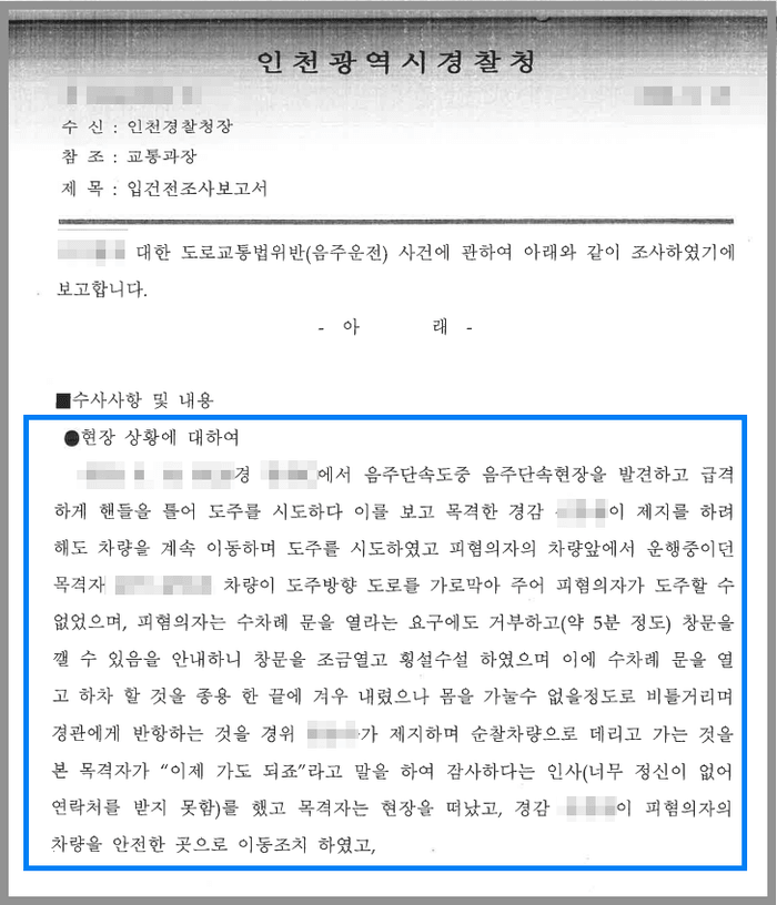 의뢰인은 공무원으로 재직 중인 사람인데, 술에 만취한 상태로 운전을 하던 중 음주단속 현장을 발견하고 도주를 시도하다가 경찰관과 주변 시민에 의해서 검거되었습니다.